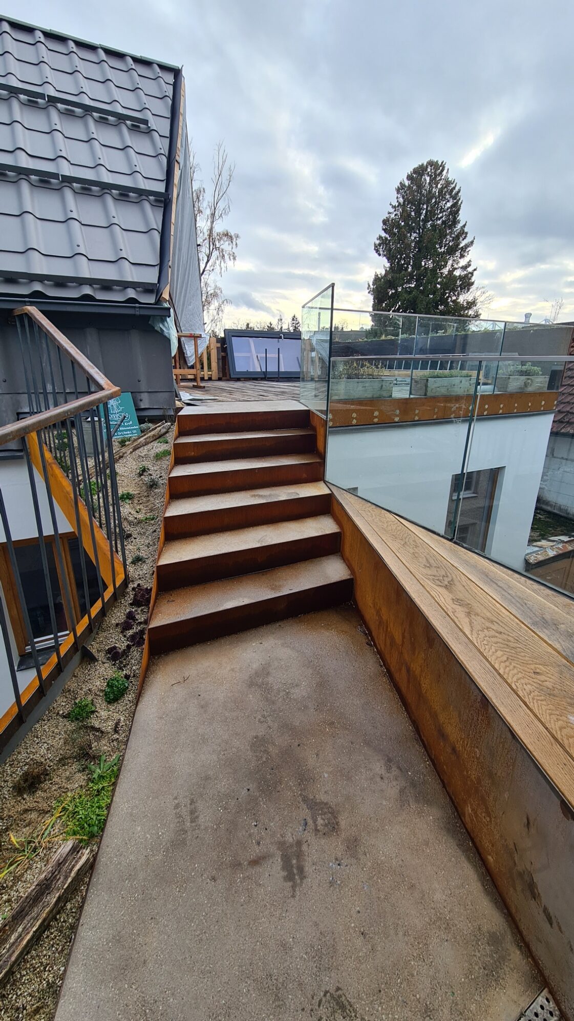 Seit August wird mit viel Eigenleistung an der Fertigstellung gearbeitet. Eine Brücke, die dem Titel „Kunst am Bau“ mehr als gerecht wird, eine Aussichtsterrasse, die zu einem gemülichen Kaffee mit Ausblick einlädt und ein zusätzlicher Raum mit Platz für Gruppen von ca. 20 Personen. Das ist der aktuelle Entwicklungsschritt, der unserer Genossenschaft viele neue Möglichkeiten eröffnet. Derzeit wird noch an der Fertigstellung des Seminarraums und der Räume im darunterliegenden Geschoß gearbeitet. Aber ein Besuch lohnt auch jetzt schon.