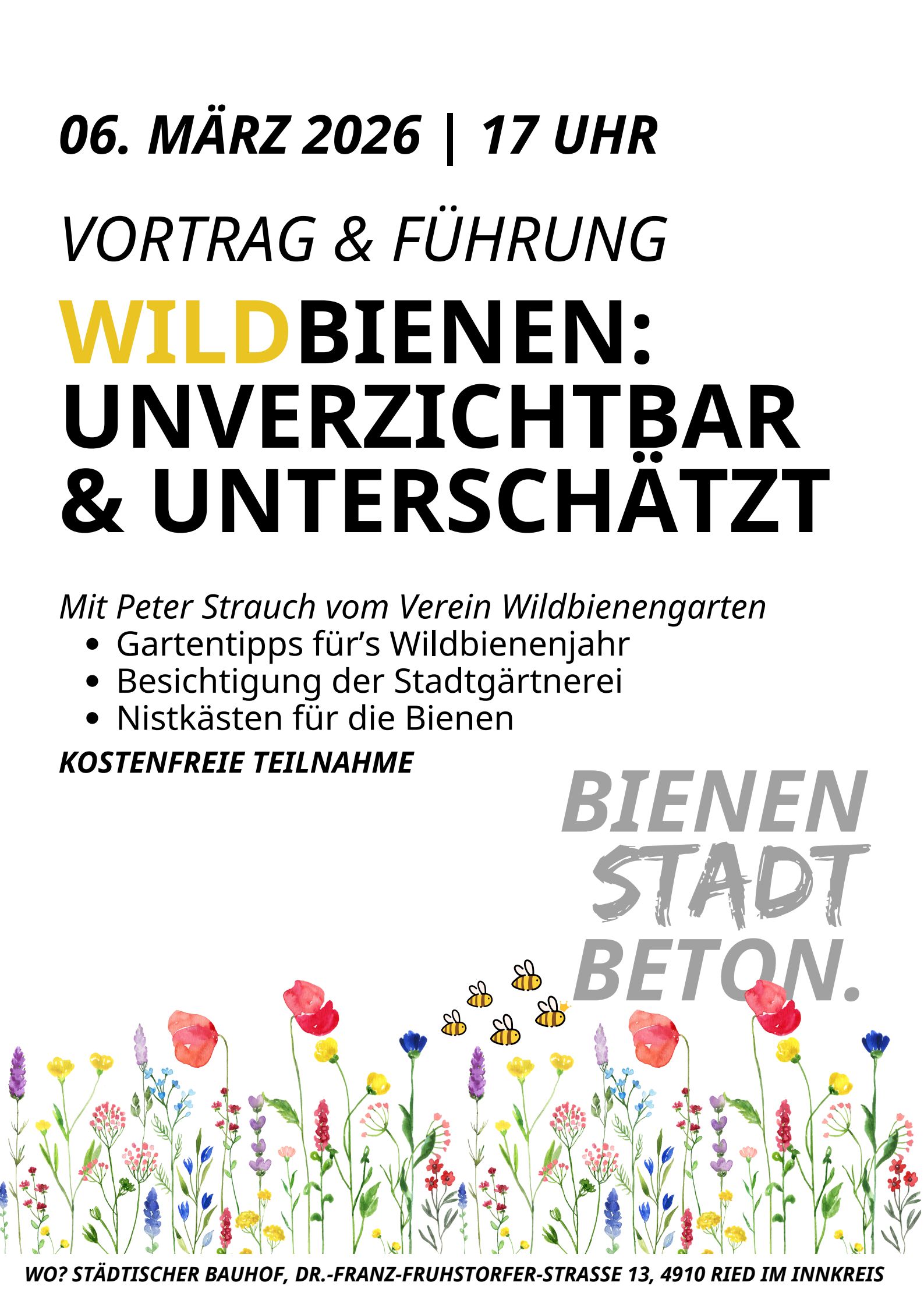 Die Stadtgemeinde Ried hat Peter Strauch vom Verein Wildbienengarten in den städtischen Bauhof eingeladen. Er gibt Tipps für das Wildbienenjahr.