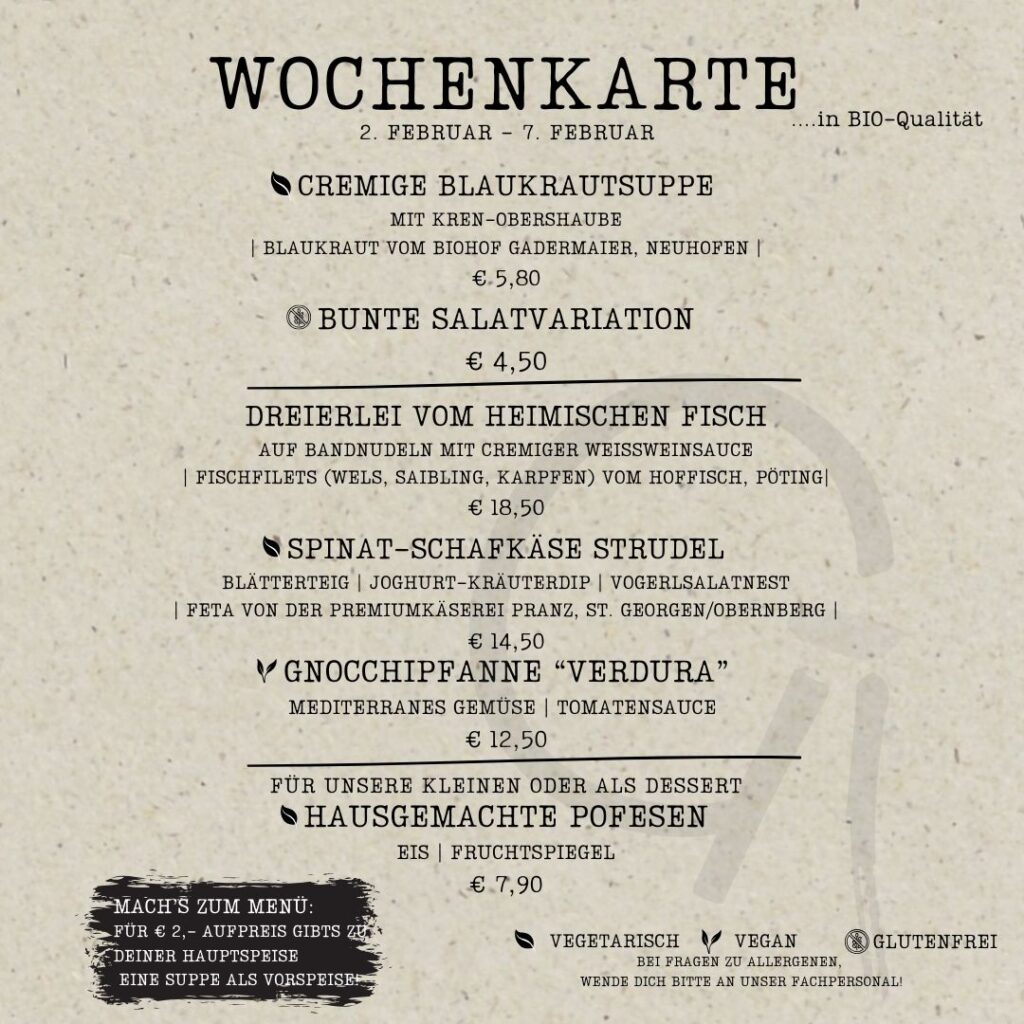 11:30 bis 14:00 Uhr Mittagskarte